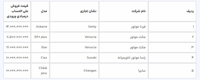 گفتنی است، آن دسته از ثبت‌نام‌کنندگان خودروهای وارداتی که در چهار دوره عرضه قبلی، انتخاب خودرو انجام داده اما تخصیص به آن‌ها صورت نگرفته (در پرتال خود گزینه عدم تخصیص را مشاهده می‌کنند) در صورت تمایل می‌توانند نسبت به خودروهای عرضه شده، خودرو جدید انتخاب کنند.